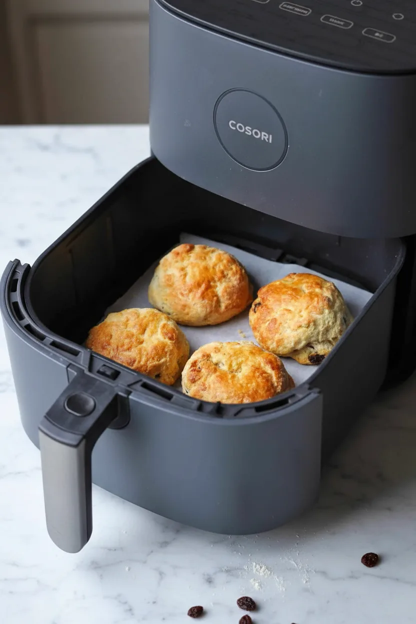 Flaky fruit-studded scones made effortlessly in the air fryer – perfect with jam!