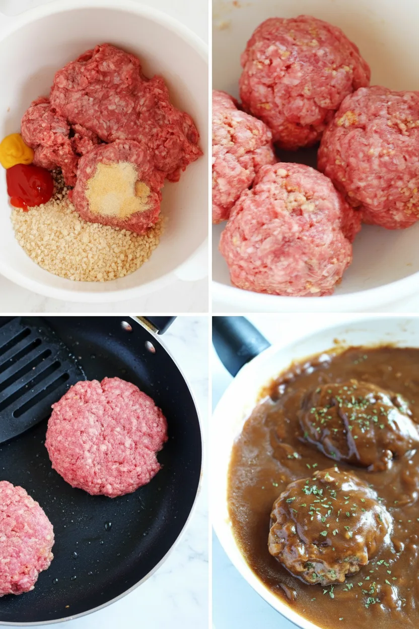 Step-by-step guidance ensures Salisbury steak success every time. This recipe comes together in three straightforward phases: mixing the patties, cooking the beef, and simmering in gravy.