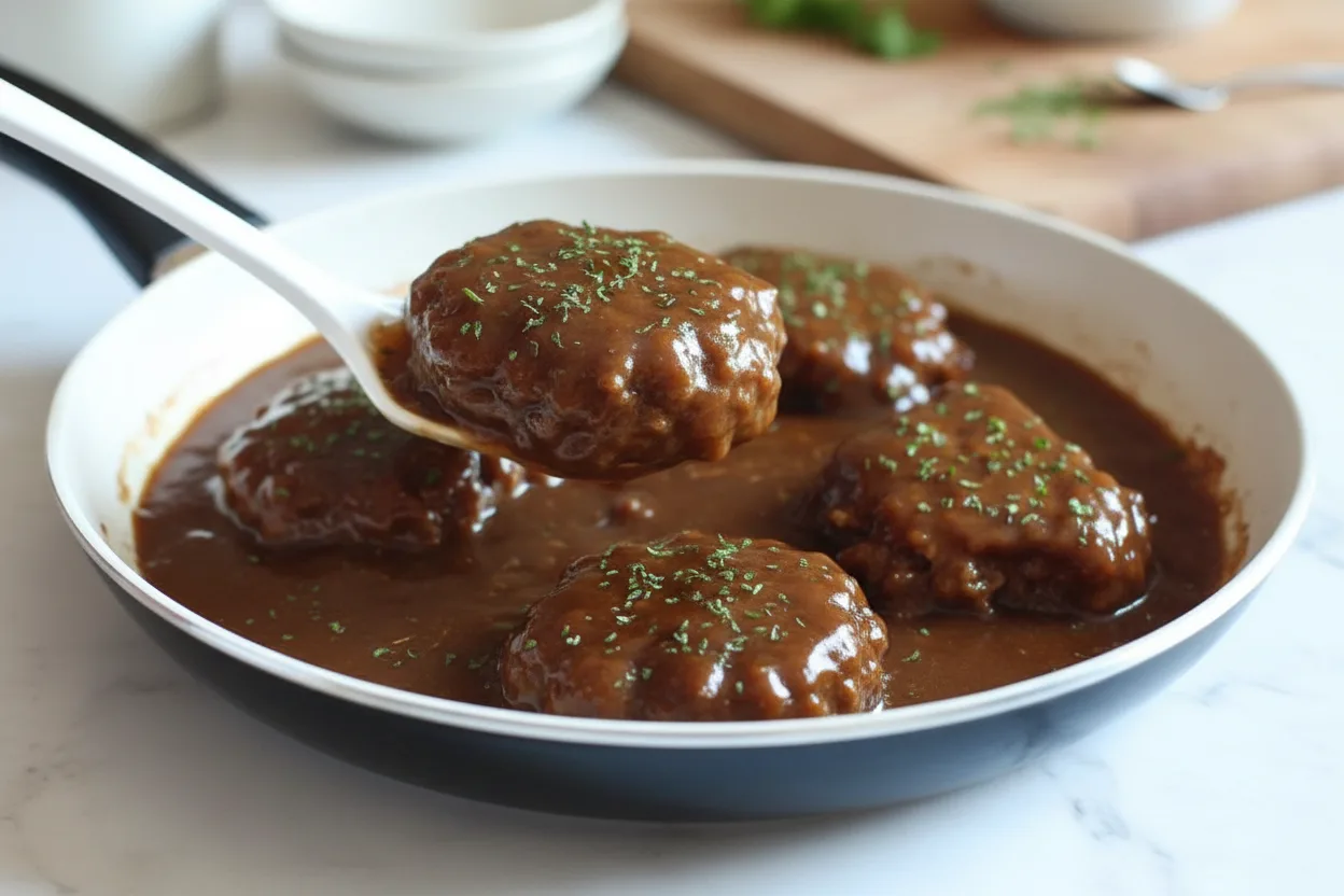 Tender beef patties in rich gravy ready in 20 minutes – perfect weeknight comfort food
