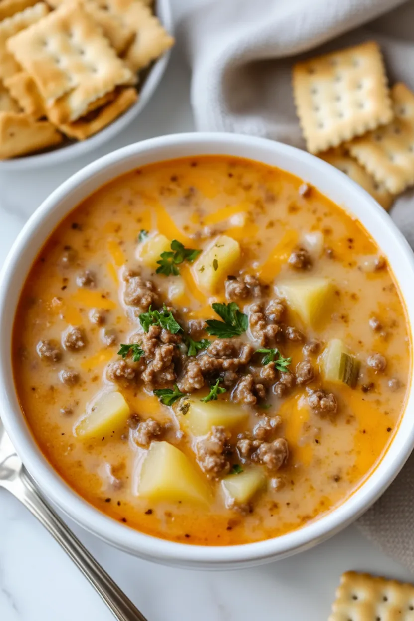 Cheesy Crock Pot Hamburger Potato Soup Recipe