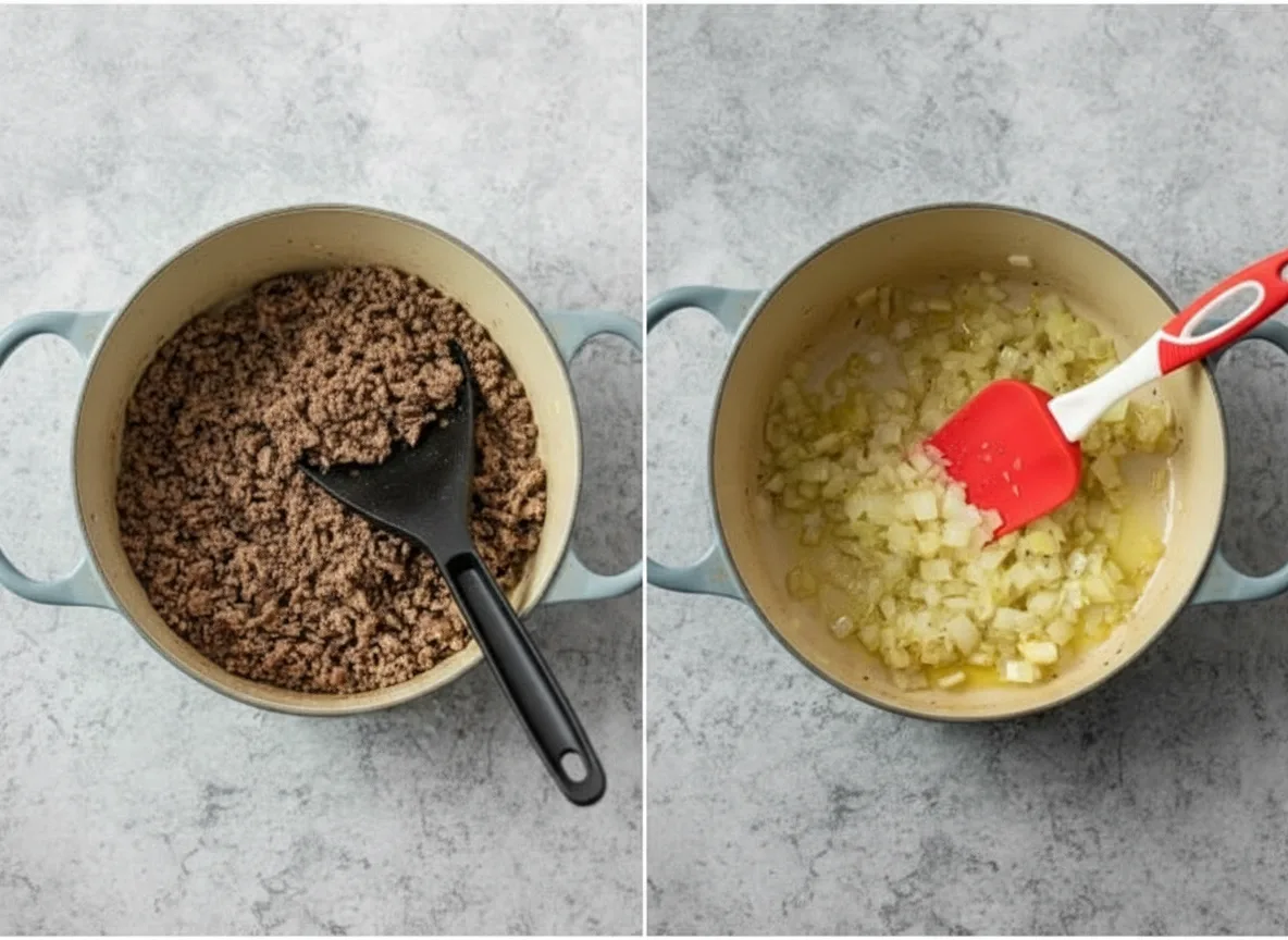 Start by heating your oven to 350 degrees Fahrenheit. Place a large pot over medium-high heat and add the ground beef, breaking it into crumbles with a wooden spoon. Season generously with salt, pepper, and Italian seasoning as it cooks. Once no pink remains, drain any excess fat and transfer the meat to a plate. Cover loosely with foil to keep warm.