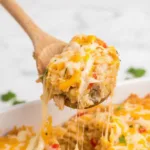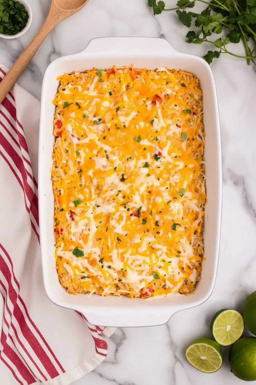 A creamy, cheesy casserole loaded with chicken, rice, and bell peppers, seasoned with zesty fajita spices for an easy family dinner.