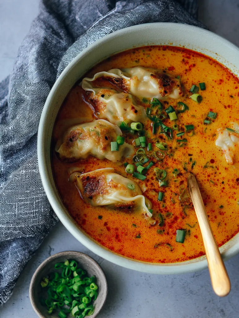 You’ll adore this coconut curry soup because it delivers restaurant-quality taste with minimal effort. First, it comes together in one pot – meaning fewer dishes to wash. Second, frozen dumplings save prep time while adding satisfying texture. Third, the broth balances spicy, sweet, and savory flavors perfectly.