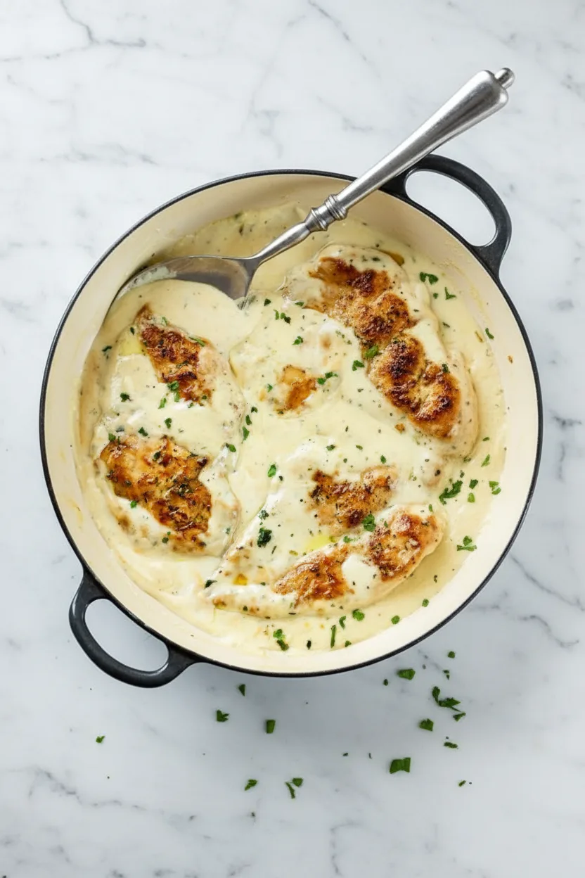 Follow these simple steps to create your perfect creamy chicken dinner. The process flows smoothly from stovetop to table.