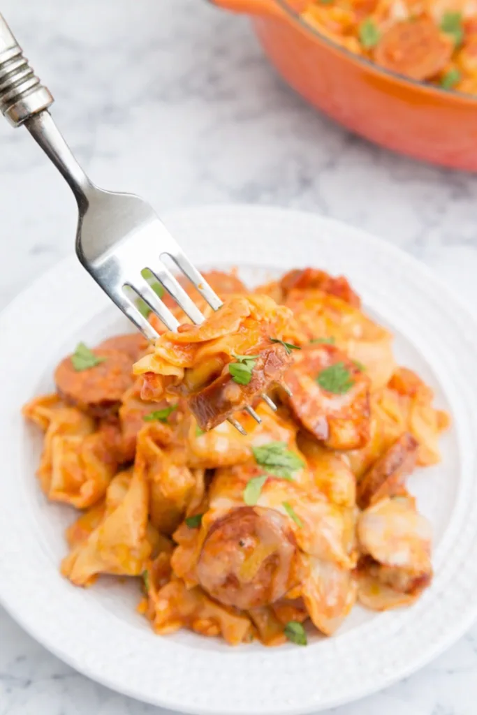 A quick and creamy one-skillet meal with smoked sausage, cheese tortellini, and rich tomato sauce that’s ready in under 30 minutes.