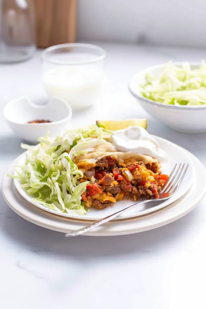 Top slices with fresh lettuce, sour cream, and diced tomatoes for classic taco flavors. For heartier meals, serve alongside Spanish rice or refried beans. Your favorite pasta dish would make a great companion for larger gatherings.
