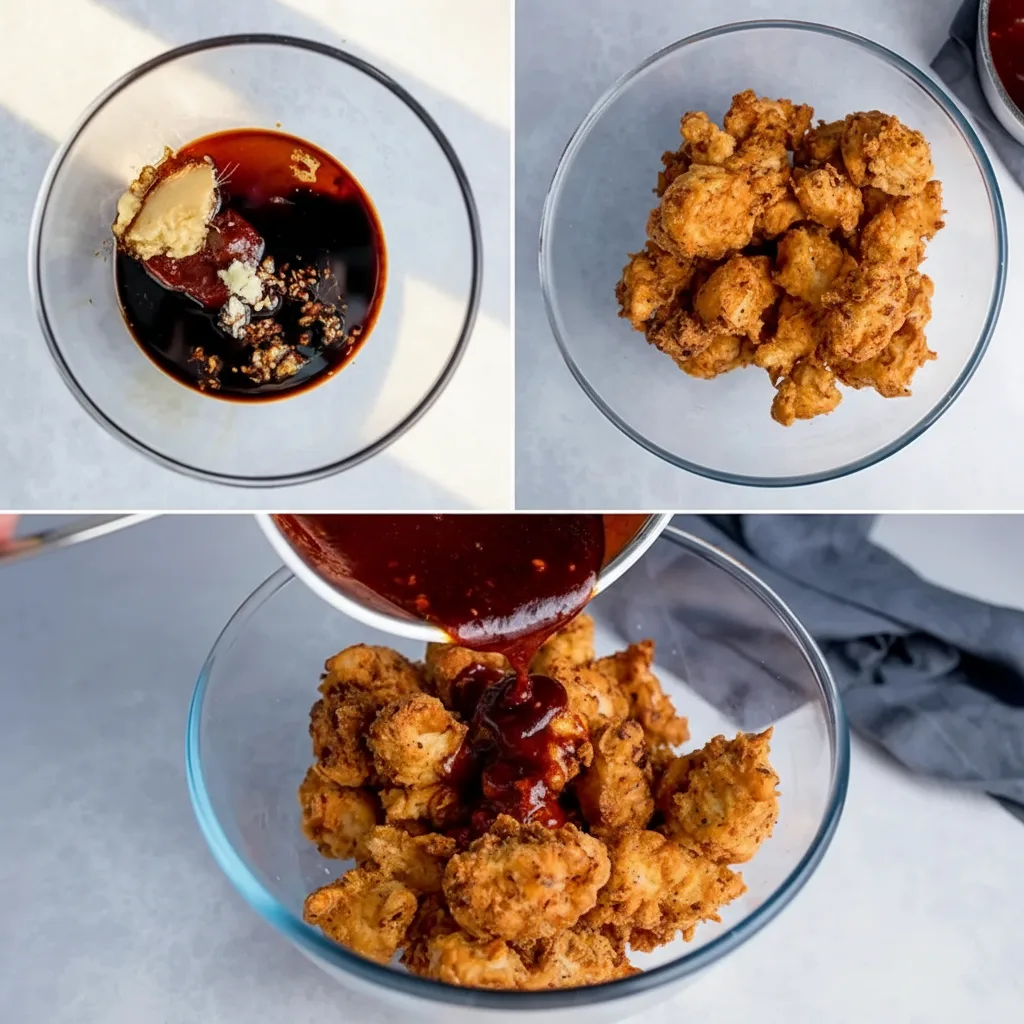 Follow these simple steps to achieve perfectly crispy chicken with that signature sweet and spicy glaze: