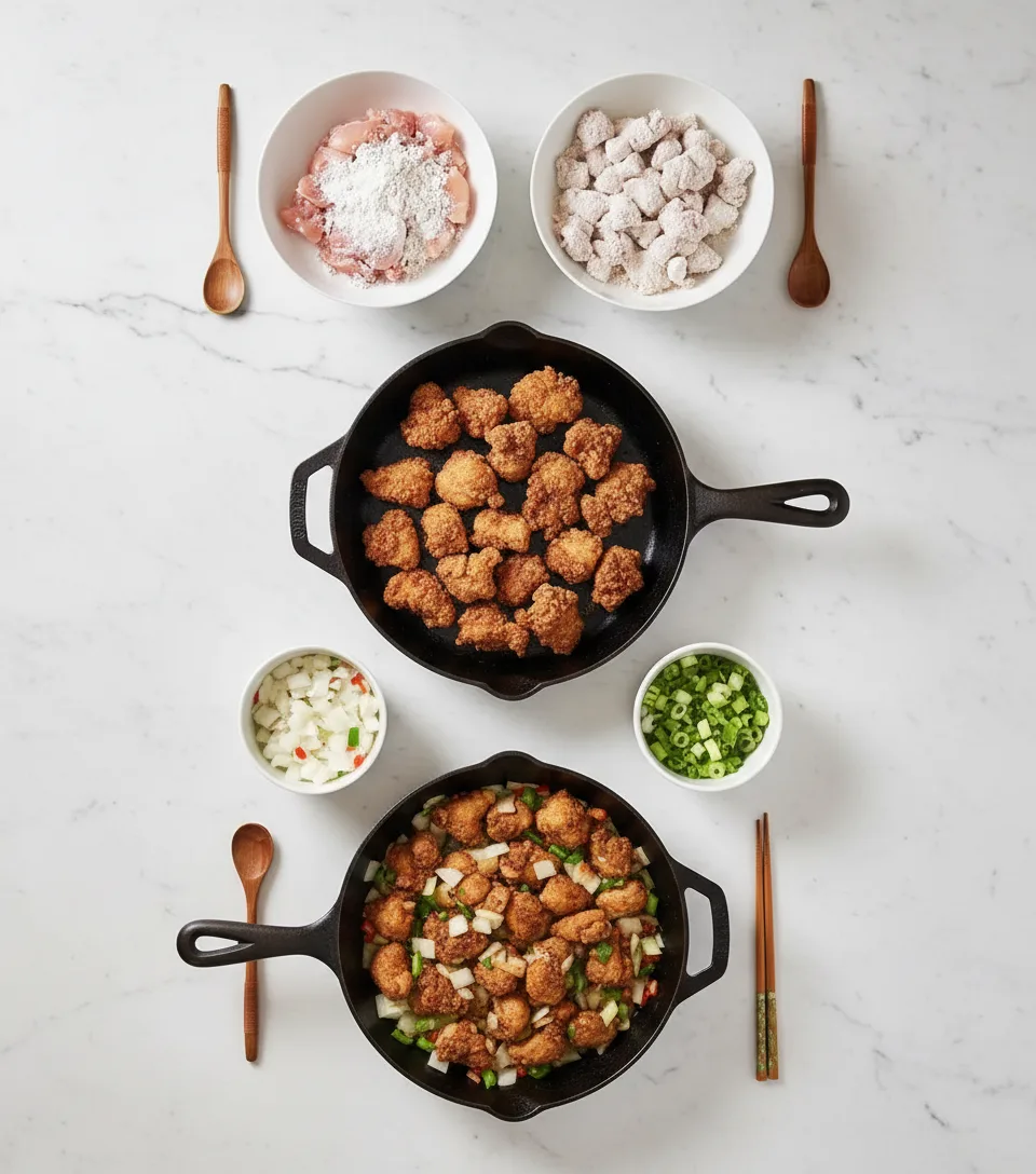 Follow these straightforward steps for restaurant-quality chicken at home. Group ingredients before starting since cooking moves fast once oil heats up.