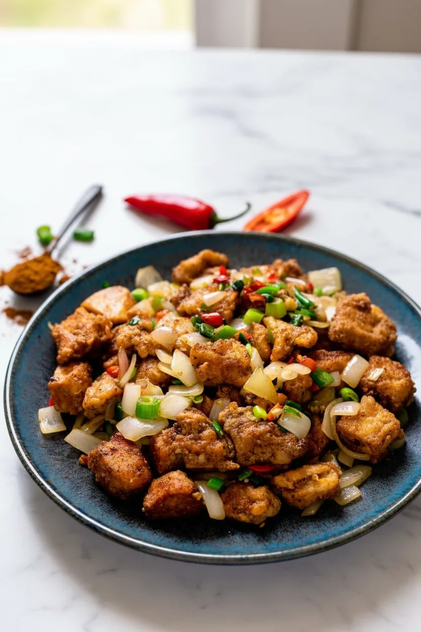 Restaurant-style crispy salt and pepper chicken with bold seasoning and crunchy texture ready in 25 minutes.