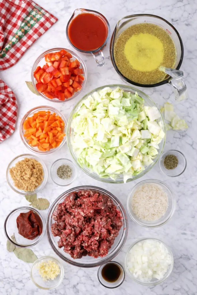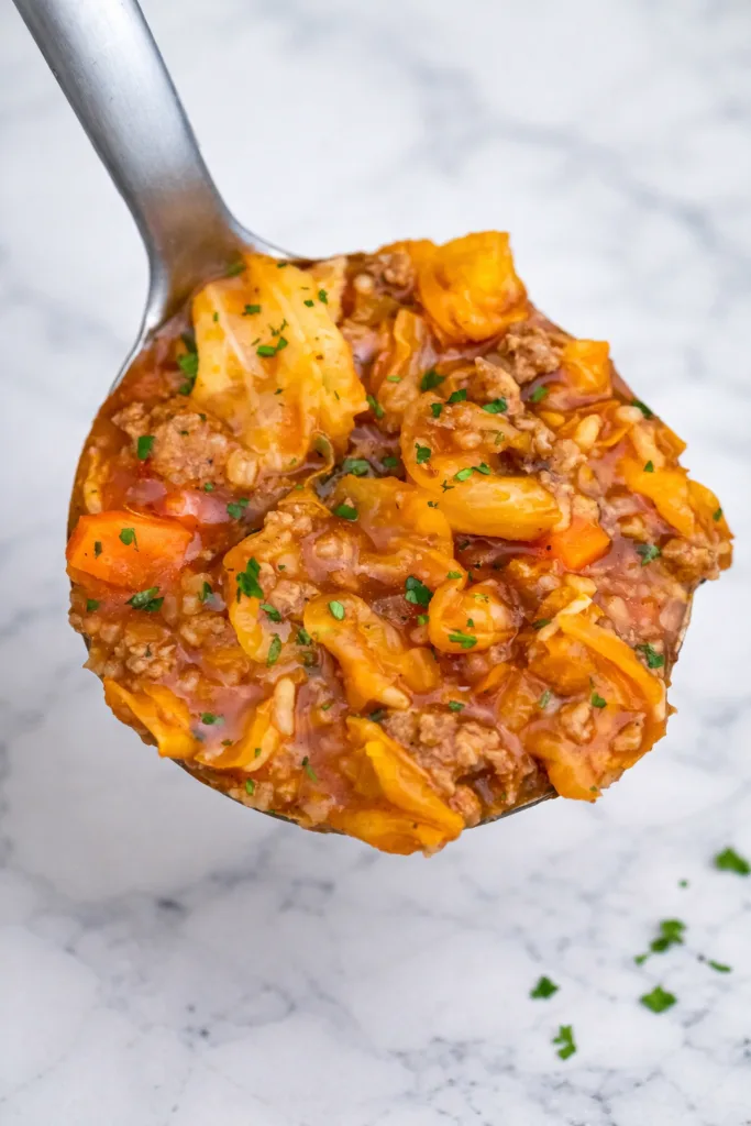 All the flavor of stuffed cabbage rolls made easy in your slow cooker! Savory ground beef, tender veggies, and rice simmer in rich tomato broth for a comforting meal.
