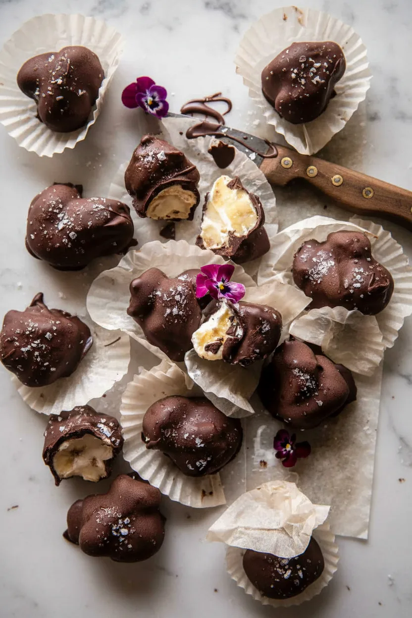 A thick coating usually means the chocolate was not tempered properly or needed more coconut oil. Ensure you melt the chocolate gently and stir in the full tablespoon of coconut oil. This thins it to the perfect dipping consistency.