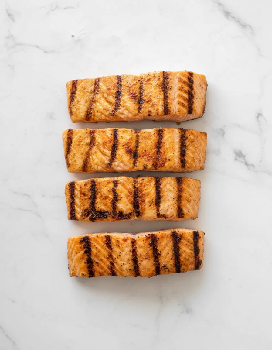 - Grill the salmon: Preheat grill or grill pan to medium-high heat. Lightly oil the grates. Place salmon skin-side down and cook for 5-7 minutes. Flip carefully and cook for another 3-5 minutes, until salmon flakes easily.