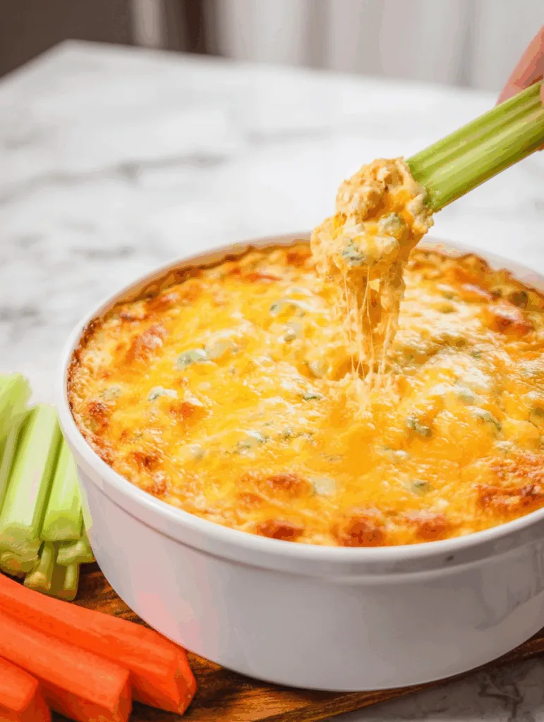 You can serve it straight out of the oven with celery sticks or cucumber rounds for a light crunch. If you’re feeling bold, scoop it into mini cups or small ramekins for personalized portions. For parties, serve it alongside some Buffalo Chicken Pull Apart Bread — the textures complement each other like old friends at a cookout.