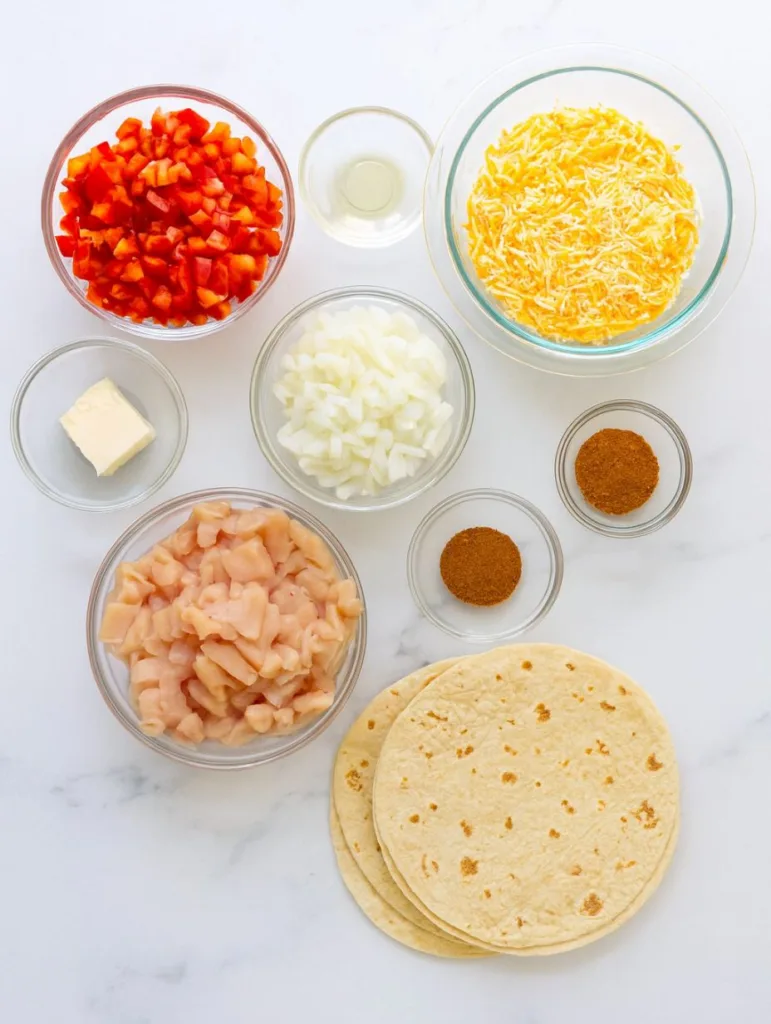 The tortilla is the foundation of a great quesadilla. Flour tortillas are ideal because they brown beautifully and hold everything together. You can use medium-sized tortillas for easy flipping. If you prefer something lighter, go for whole wheat or spinach tortillas for a nutritional twist.