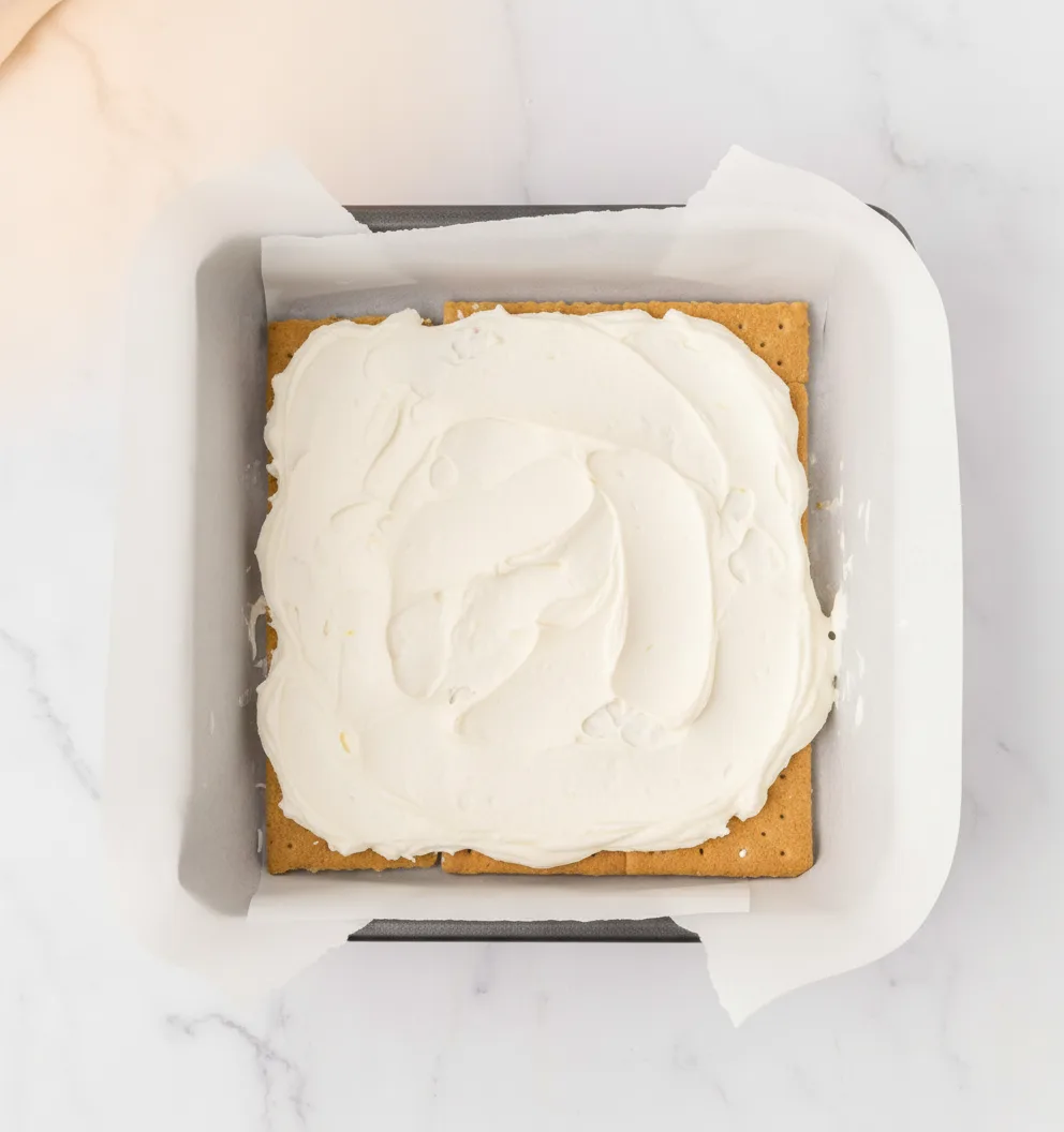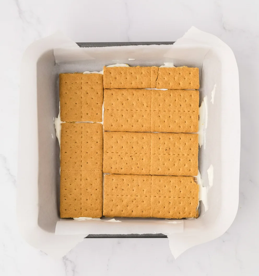 - Layer 1: Arrange graham crackers to fully cover pan bottom