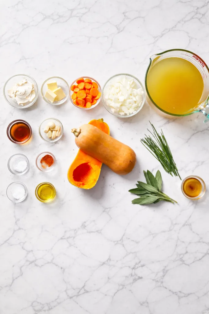 Here’s what you’ll need to make this roasted butternut squash soup plus flexible substitution ideas: