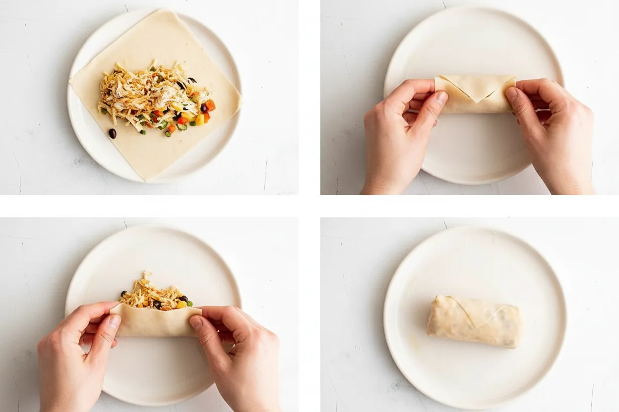 - Use refrigerated egg roll wrappers instead of thawed frozen ones for easier handling