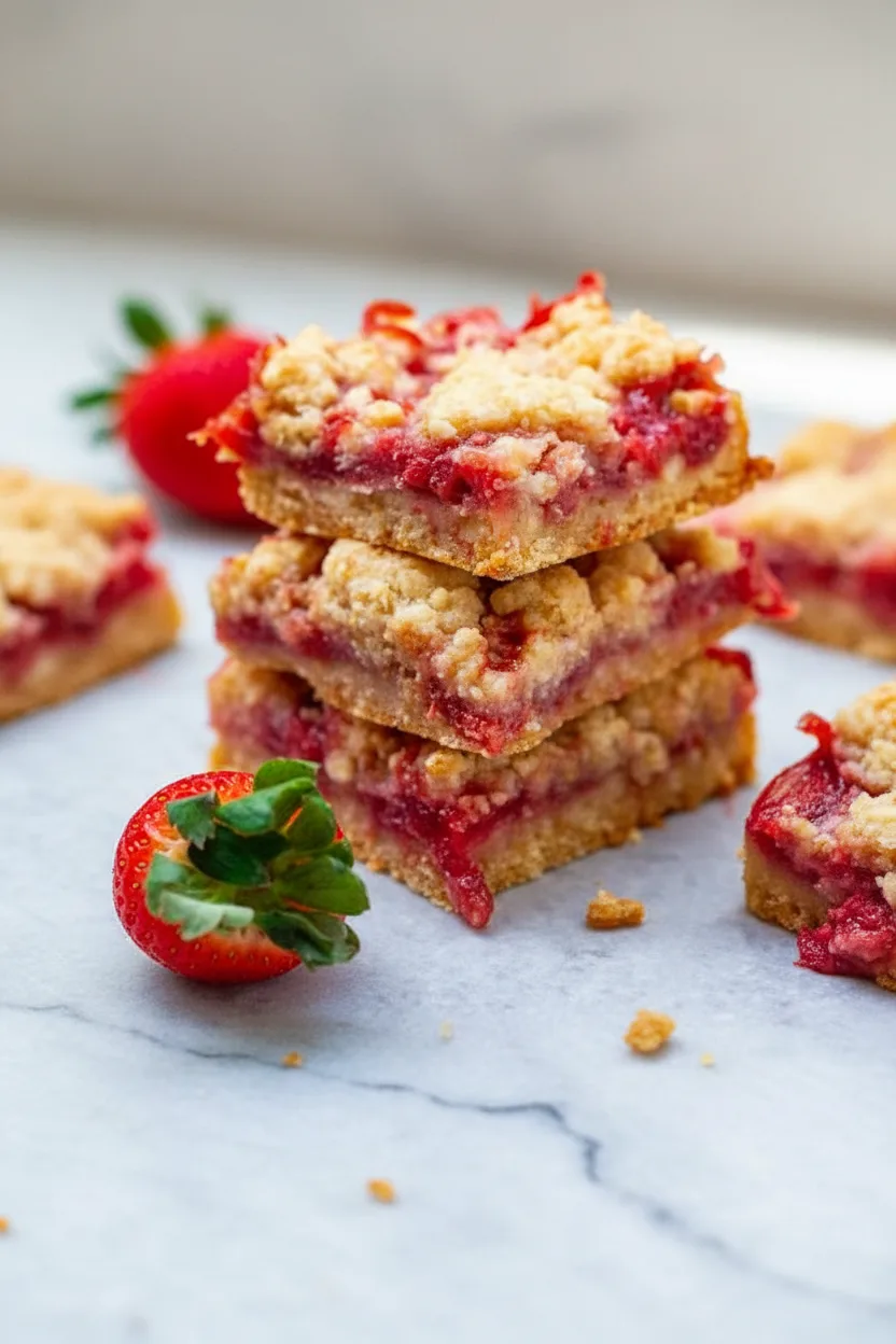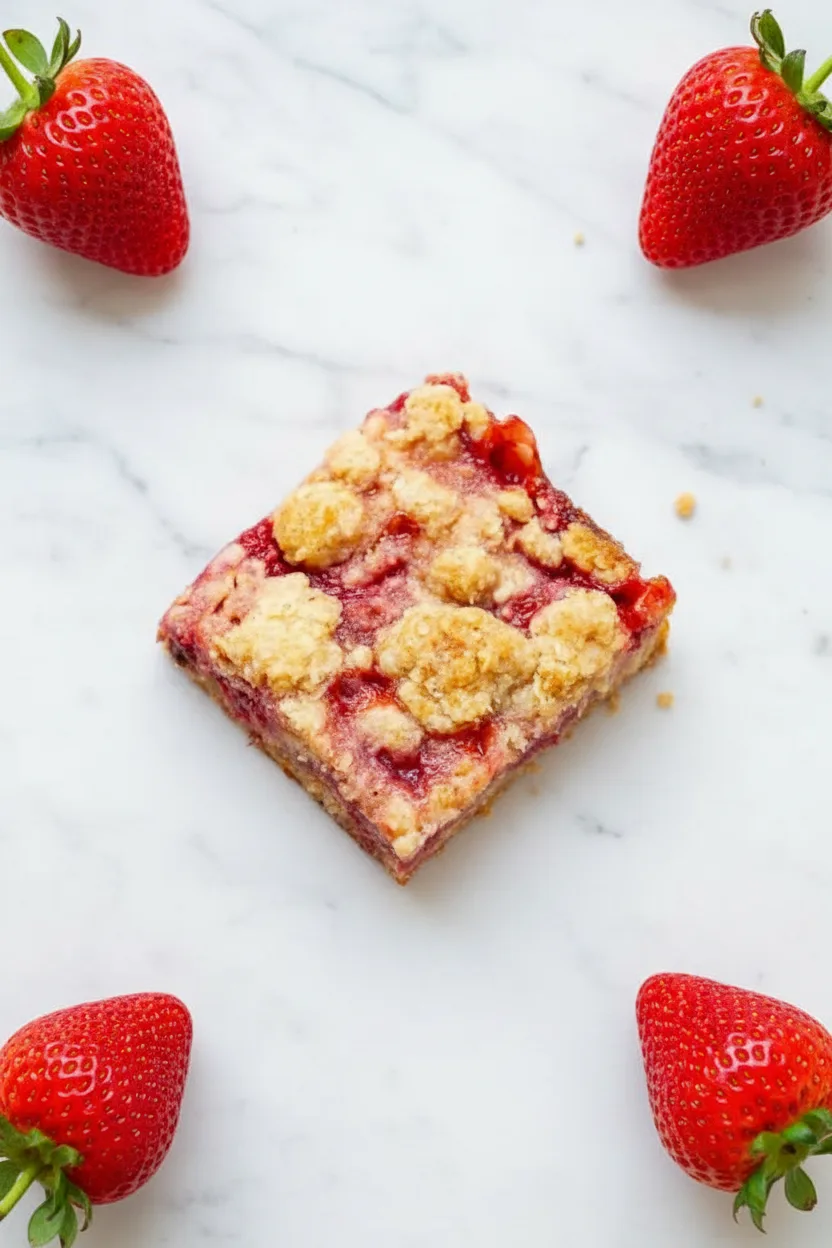 Buttery oatmeal crumble bars with a sweet strawberry filling—perfect for snacks or dessert!