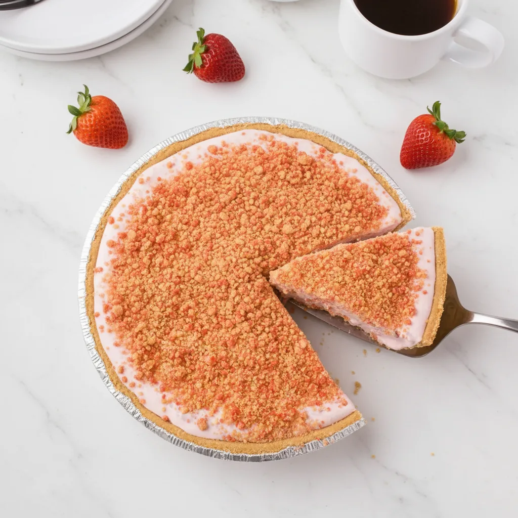 Spoon the strawberry cream mixture into the premade crust, smoothing the top evenly. Sprinkle the completely cooled cookie crumble over the surface, pressing lightly to adhere. Immediately transfer the pie to your freezer. For optimal texture, freeze for at least 8 hours or overnight before slicing.