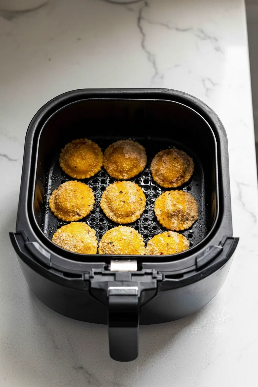 Preheat air fryer to 375°F (190°C). Arrange ravioli in a single layer without overlapping. Lightly spray with cooking oil. Cook for 6-8 minutes, flipping halfway through, until golden brown.